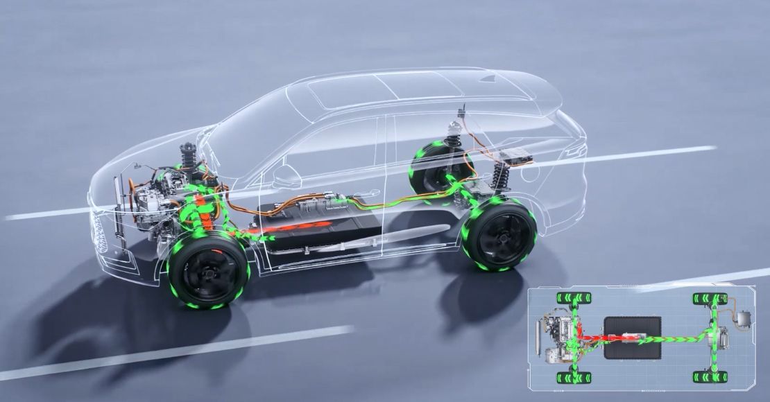 DM-p uses real-time electronic torque vectoring that reacts up to 100× faster than traditional AWD systems. Torque is continuously adjusted between front and rear axles to enhance grip on snow, sand, wet roads, and during cornering — ensuring confident, stable driving in all conditions.